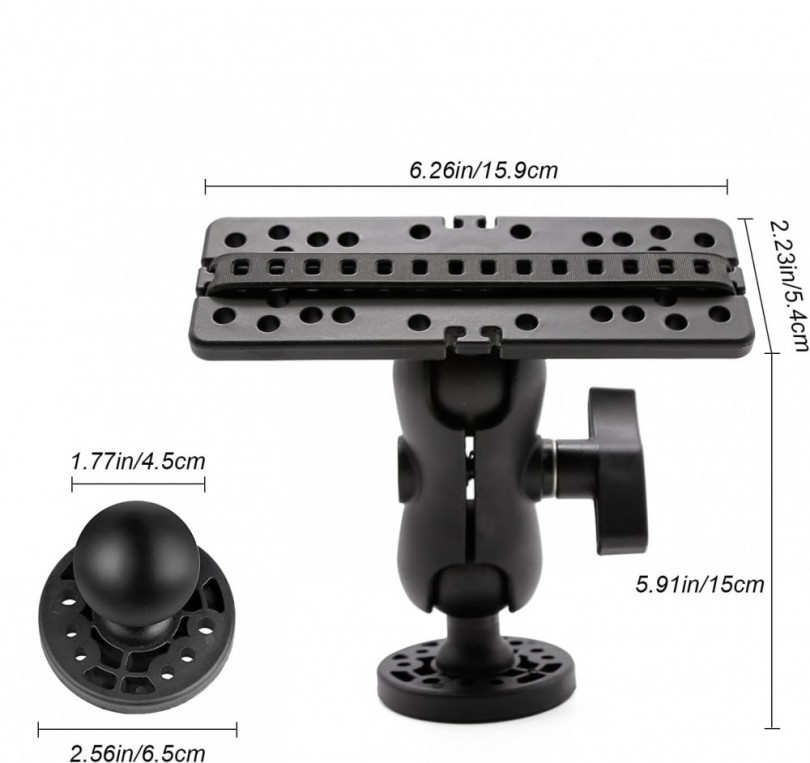 Çoklu Delik Tasarımı; Balık bulucu GPS plakası döner braketi modeli, M5 vidalarla sabitlenmesi gerekmektedir ve farklı balık bulucu kontrplaklarına yerleştirmek için çoklu delikler ayrılmıştır bu oldukça pratik ve montajı kolaydır..